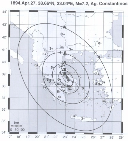 Πηγή : www.oasp.gr [«Atlas of isoseismal maps for strong shallow earthquakes in Greece and surrounding area (426BC - 1995)», Papazachos B.C., Papaioannou Ch. A., Papazachos C.B., Savvaidis A.S..«Οι σεισμοί της Ελλάδας», των Παπαζάχου Β. & Παπαζάχου Κ. (1989)«The Earthquakes of Greece», Papazachos B.C., Papazachou C. (1997)]